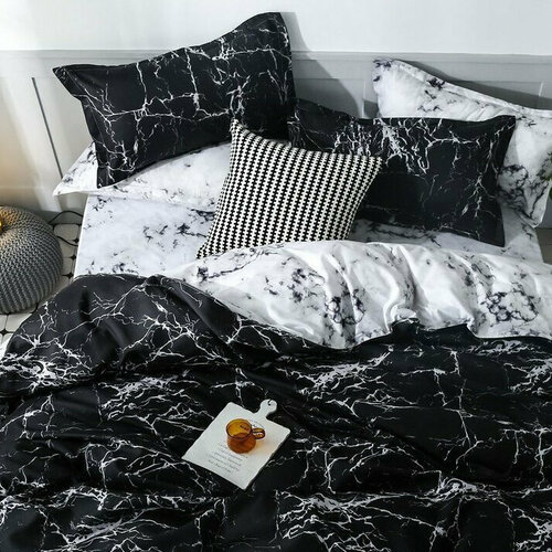 Комплект постельного белья "Aimee" 1,5 спальный. Постельное белье с простыней на резинках по углам. Сатин 100%. Хлопок. SAYA HOME. Мрамор