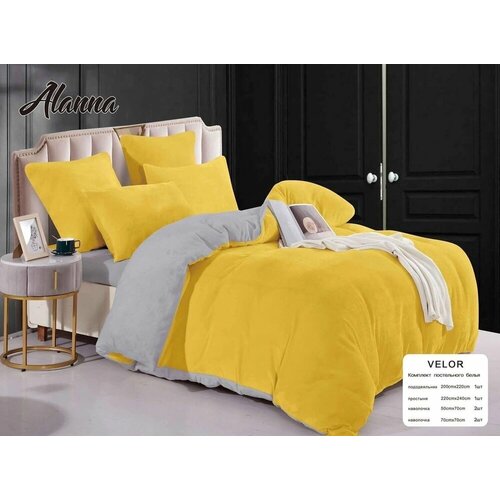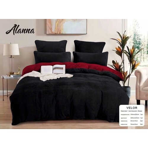 Теплый Комплект Постельного Белья ALANNA Велюр Евро Черный