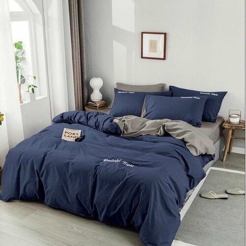 Комплект постельного белья плотность ткани: 120 г/м2 однотонный с вышивкой и двусторонним пододеяльником, выполненный в стиле миним...