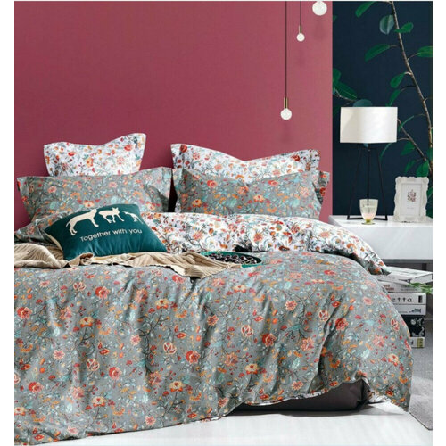 Постельное белье Asabella 100% тенсель люкс 2137-6 евро, cерый/фисташковый