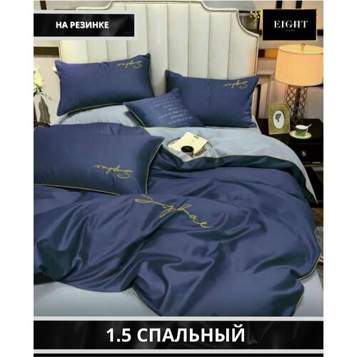 Комплект постельного белья MENCY WINNI Жатка Сине-голубой, 1,5 спальное с простыней на резинке