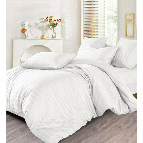 Комплект постельного белья из Поплина Семейный Mency House. 4 наволочки 70x70 и 50x70. Простыня на резинке по кругу. SAYA HOME. Белый