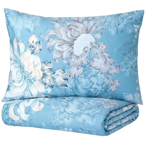 Пододеяльник и 1 наволочка икеа фобломмиг, 150x200/50x70 см, цветок/синий