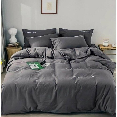 Комплект постельного белья Good Sleep из Сатина Евро Однотонное Хлопок Простыня 220x240 см Серый.