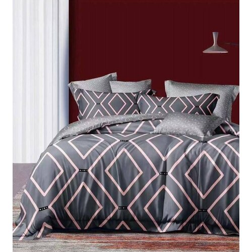 Комплект постельного белья "Aimee" 2 спальный. Постельное белье с простыней на резинках по углам. Сатин 100%. Хлопок. SAYA HOME. Серо-розовый
