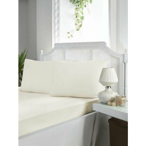 Простыня на резинке из сатина KARVEN P898 кремовая 100х200х33 с наволочкой 50х70