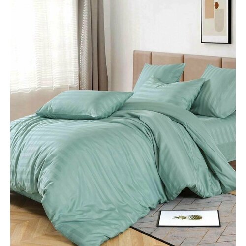 Постельное белье семейное с 2 пододеяльниками 160x220 Simple Living Hawaii комплект сатин, 2 наволочки 50х70, Зеленый