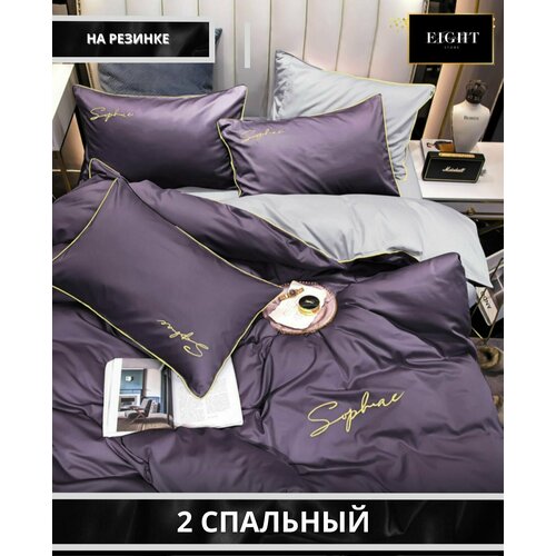 Комплект постельного белья MENCY WINNI Жатка Фиолетово-серый, 2 спальное с простыней на резинке