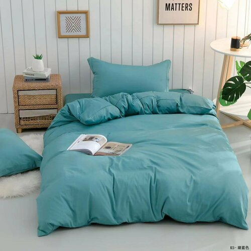 Комплект постельного белья однотонный, вареный хлопок голубой, размер семейный