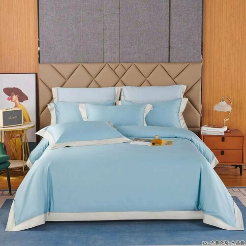 Комплект постельного белья Versalise Decor, Семейный, сатин, 2-х спальный, голубой, хлопок