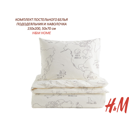 Комплект постельного белья , Пододеяльник и наволочка H&M 1,5-спальное, белый/карта