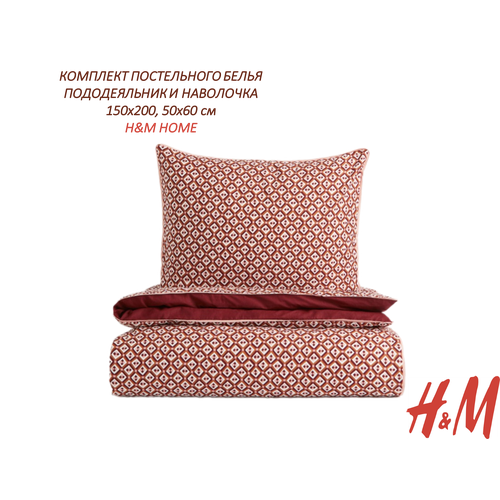 Комплект постельного белья H&M 1,5-спальное, Пододеяльник и 1 наволочка, темно-красный/с рисунком - лучший подарок для любимых!