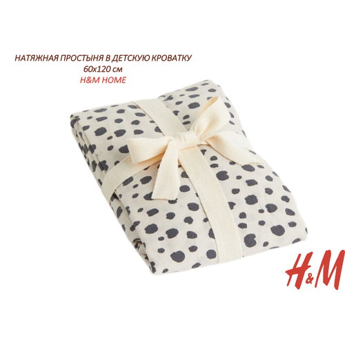 Натяжная простыня H&M HOME в детскую кроватку, 60х120 см, белый/пятнистый темно-серый