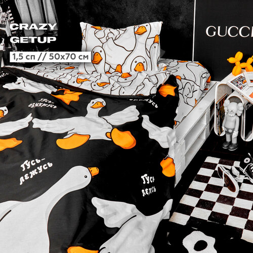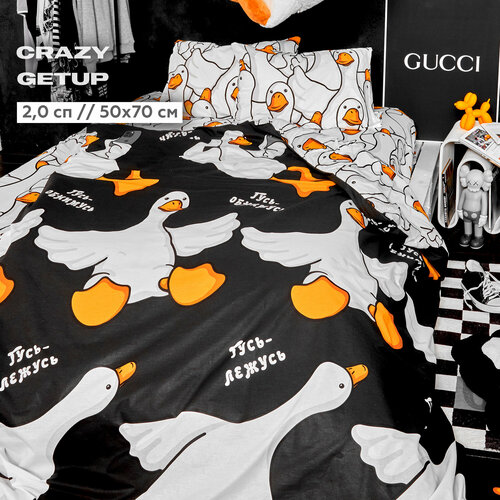 Постельное белье 1.5 спальное Crazy Getup, Перкаль, нав. 50х70, Гусь обнимусь