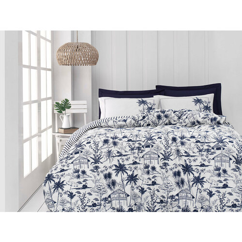 Турецкое постельное белье ALTINBASAK сатин LEONA синее евро