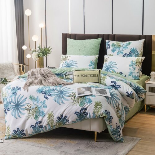 Постельное белье Евро 200x220 Simple Living Hawaii 2 спальный комплект из сатина, Зеленый