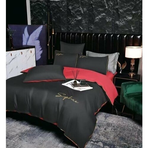 Постельное белье черное/красное