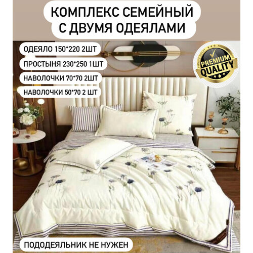 Комплект постельного белья семейный с 2-мя готовыми одеялами "Белая лаванда" Candies, наволочки 50х70, 70x70 (хлопок - 100%)