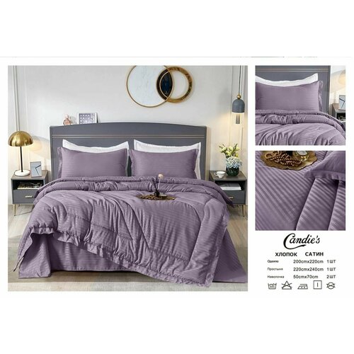 Комплект постельного белья с одеялом CANDIES, Сатин, Евро, наволочки 50x70