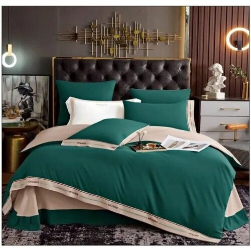Постельное белье семейное с 2 пододеяльниками 160x220 Simple Living Hawaii комплект сатин, 2 наволочки 50х70, Зеленый