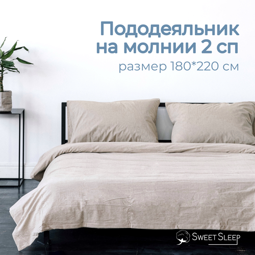 Пододеяльник 180х220 вареный хлопок 2 спальный Sweet Sleep, светло-бежевый