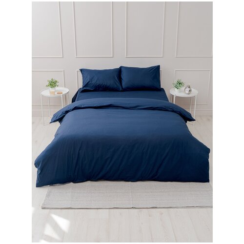 Комплект постельного белья 1 спальный YERRNA, наволочка 50х70 1шт, перкаль, темно-синий,с2081шв/210081