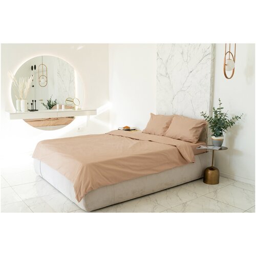 Комплект постельного белья ZonaSona однотонный Бежевый, 1,5 спальный, поплин, наволочки 70х70 2 шт.