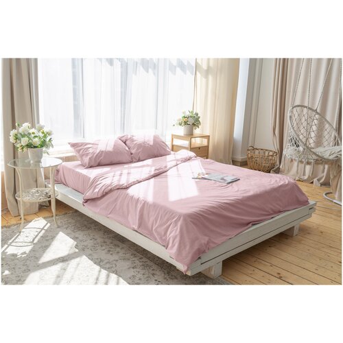Комплект постельного белья ZonaSona с простыней на резинке, Пудровый, 2 спальный, поплин, наволочки 70х70 2 шт.