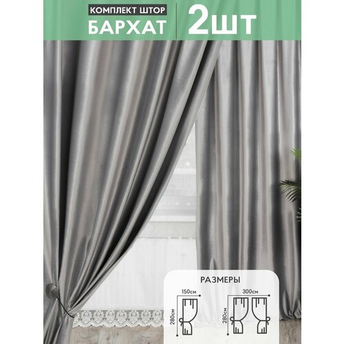 Шторы в спальню для гостиной комплект бархат 2 шт. Графит