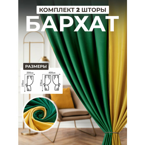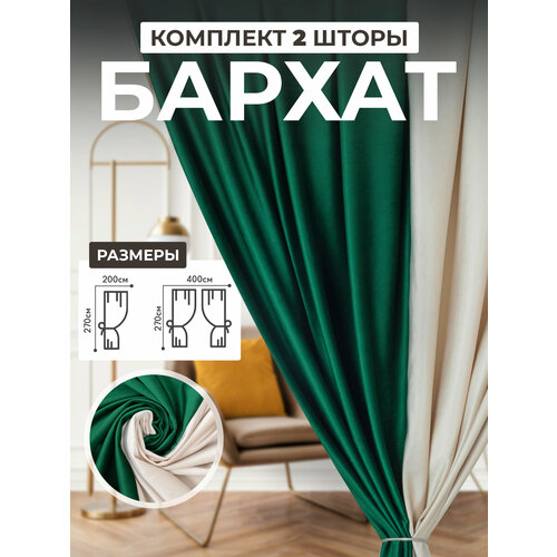 Шторы в спальню для гостиной комплект бархат 2 шт. Изумрудные