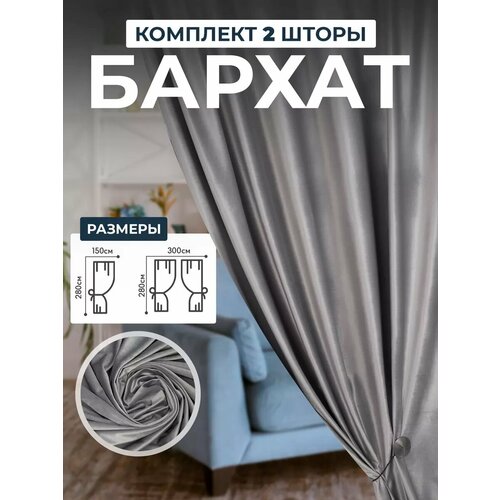 Шторы для гостиной комплект бархат 2 шт. Серый