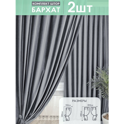 Шторы в спальню для гостиной комплект бархат 2 шт. Темно-серый