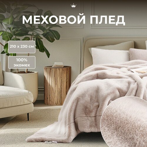 Плед-покрывало мех кролика 2м*2.2м, кремовое буклированное "волна"