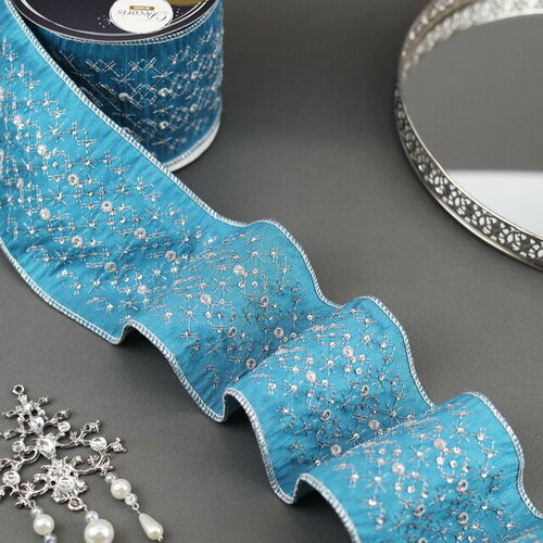 Kaemingk Декоративная лента Blue Blush: Сияющие звезды 500*10 см 440041