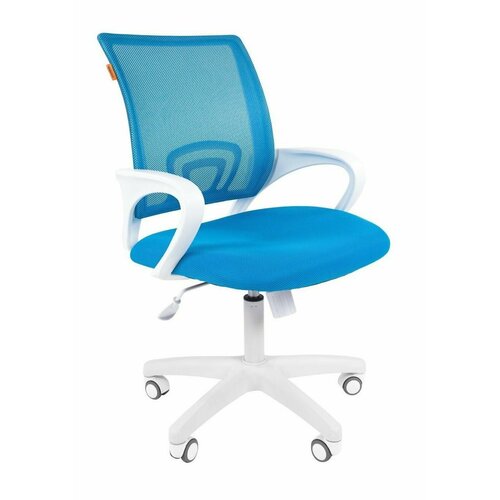 Офисное кресло CHAIRMAN 696 в белом пластике, ткань/сетка, голубой