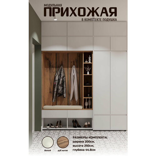 Комплект мебели для прихожей Прага композиция №5 Белый/Дуб вотан/Белый