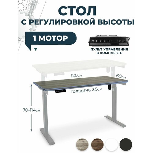 Компьютерный стол для работы сидя и стоя LuxAlto, дуб темно-коричневый ЛДСП 120x70x2,5 см, серое подстолье М1