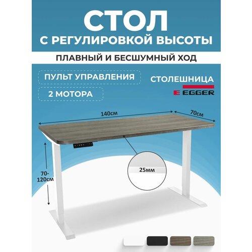 Стол с электрическим подъемным механизмом LuxAlto, белая столешница ЛДСП 140x60x2,5 см, черное подстолье Е6