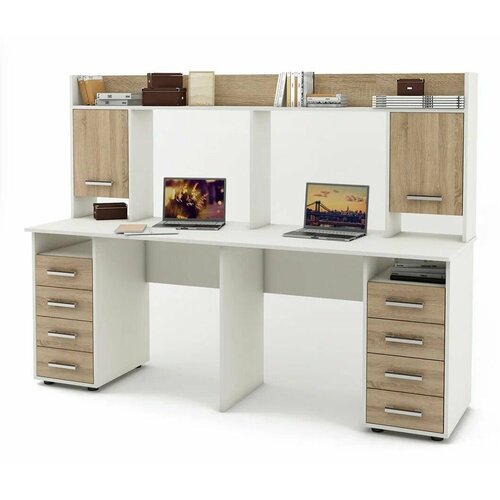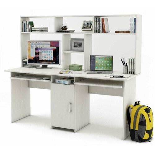 Письменный стол МФ Владимир Лайт-10К с надстройкой ПСЛТ-10К-СН Белое дерево