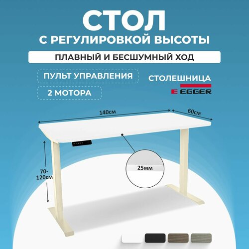Письменный стол с электрорегулировкой высоты PROtect, столешница ЛДСП 140x60x2.5 см, подстолье Слоновая кость SMART
