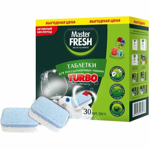 Таблетки для посудомоечных машин MASTER FRESH TURBO 8в1 в нерастворимой оболочке, 30 шт