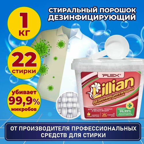 Стиральный порошок дезинфицирующий для цветного, белого и детского белья PLEX Lillian 1кг (22 стирки)