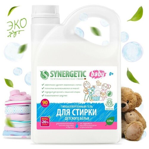 Жидкое средство для стирки Synergetic, гель, для детского белья, 2.75 л