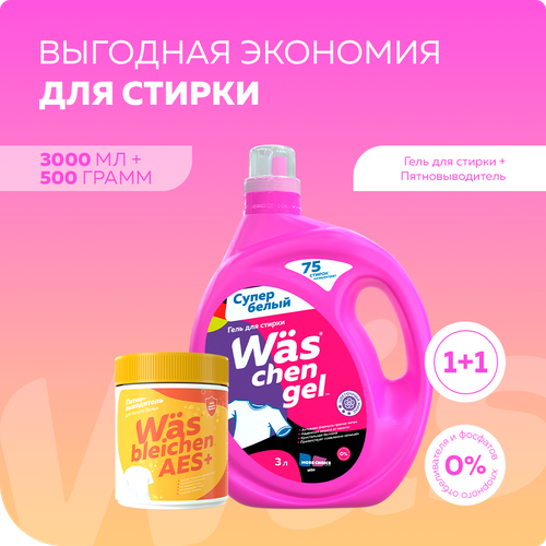 Гель для стирки 3л + Пятновыводитель для белого белья 500 гр Was KWgW3SR