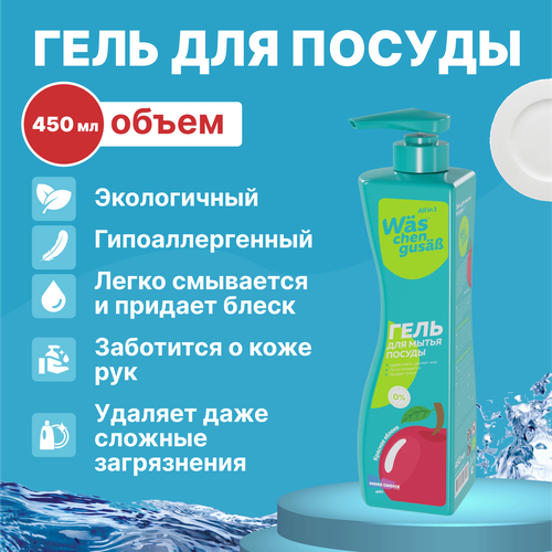 Средство гель для мытья посуды Красное Яблоко Was / ВАС 450 мл