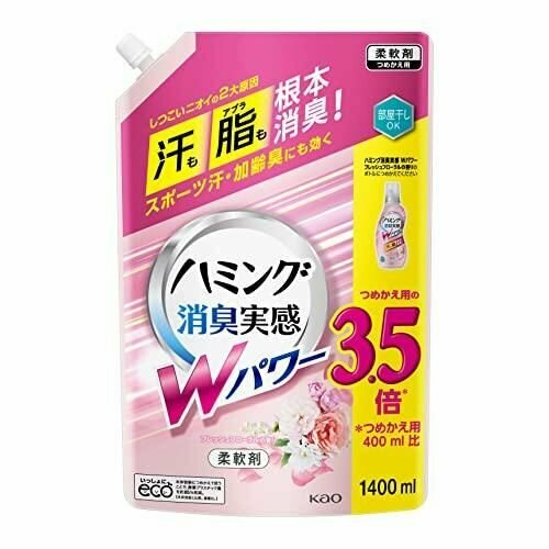 Кондиционер-ополаскиватель для белья KAO Humming W Power Fresh Floral со свежим цветочным ароматом, 1400мл.