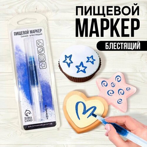 Пищевой маркер с блёстками "Синий металлик" для украшения десертов, 1 шт. х 12 г.