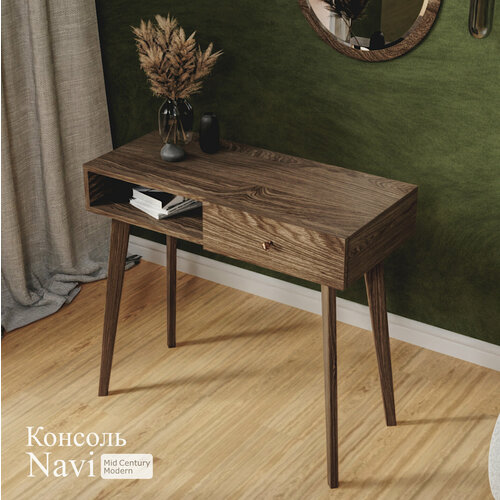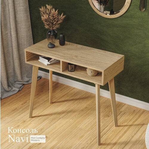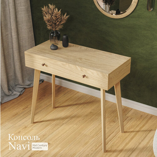 Туалетный стол Navi, деревянный столик с ящиками и ножками, Золотой дуб