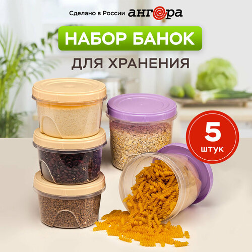 АНГОРА Набор пищевых контейнеров А8703 700 мл, 1000 мл, 12.5x12.5 см, ⌀14 см, кремовый/сиреневый, 5 шт.