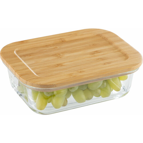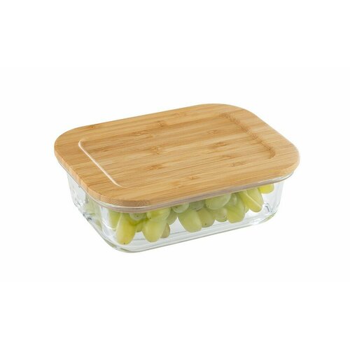 Контейнер BAMBU объем 600 мл из жаропрочного стекла с крышкой из бамбука прямоугольный 106022
